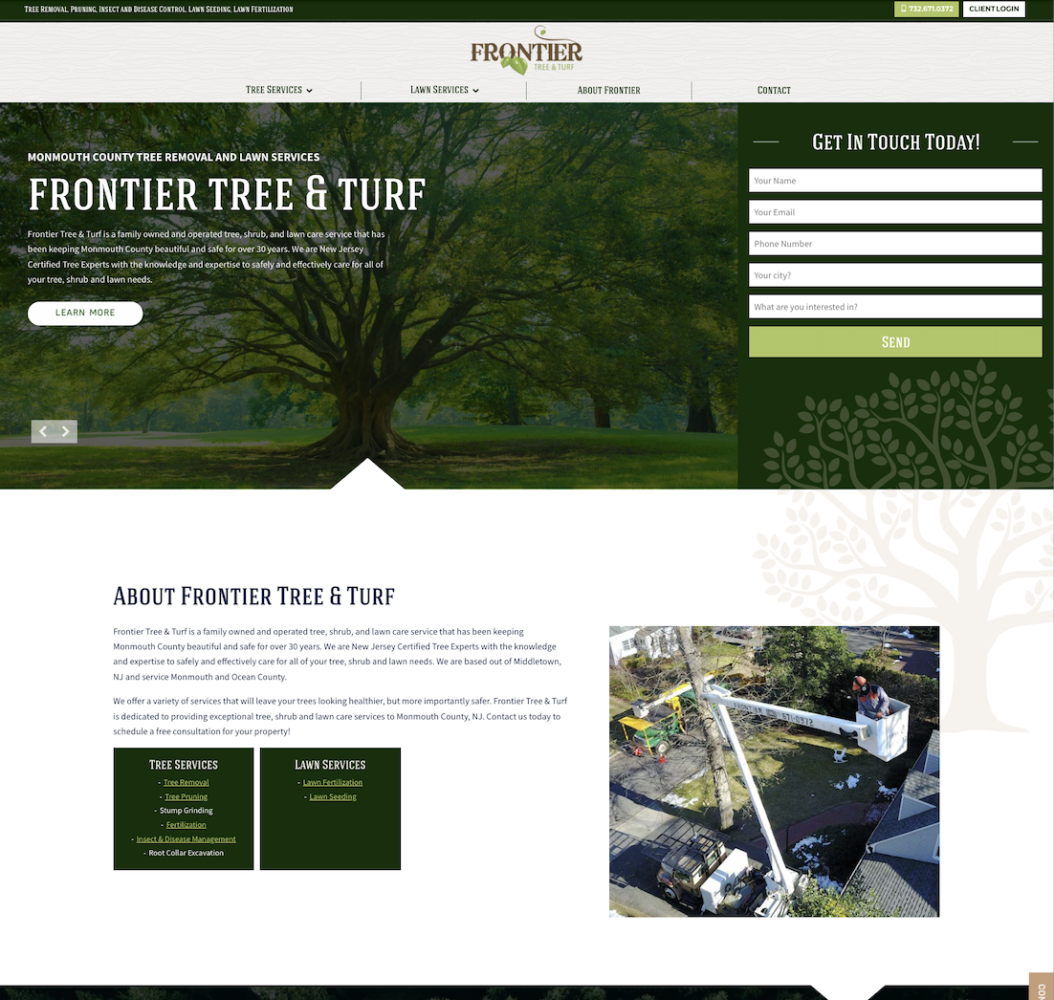 Frontier Tree & Turf is a family owned and operated tree, shrub, and lawn care service that has been keeping Monmouth County beautiful and safe for over 30 years. We are New Jersey Certified Tree Experts with the knowledge and expertise to safely and effectively care for all of your tree, shrub and lawn needs. We are based out of Middletown, NJ and service Monmouth and Ocean County. We offer a variety of services that will leave your trees looking healthier, but more importantly safer. Frontier Tree & Turf is dedicated to providing exceptional tree, shrub and lawn care services to Monmouth County, NJ. Contact us today to schedule a free consultation for your property!
